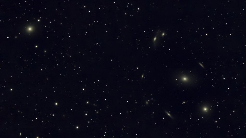 Vesolje je ogromno. Najbolj se to zavemo, če slikamo ne samo posamezne galaksije, ampak celotne jate galaksij. Najbolj znana jata galaksij je Jata v Devici, ki ima jo sestavlja približno 1300 galaksij vseh vrst. Jate galaksij se združujejo Nadjate. Nadjati galaksij v Devici pripada tudi naša Krajevna jata galaksij (v katero sodita npr. tudi galaksiji M 31 in M 33). Najbolj znan del Jate v Devici je Markarianova veriga, ki jo sestavlja 8 relativno svetlih galaksij in še veliko več mnogo manjših. Doslej sem uspel posneti samo osrednji del Jate v Devici. V prihodnjih tednih pa bom poskušal posneti celotno jato.