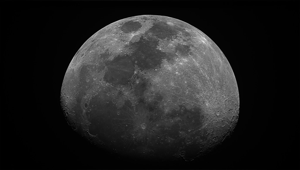 Luna, kot je bila videti 3. 9. 2025: teleskop Celestron C5 z 0,5X reducerjem, stackano 10 % od 10.000 sličic.