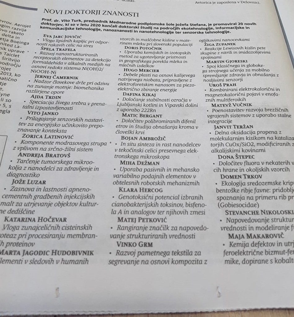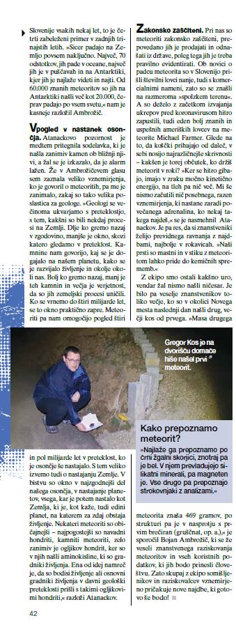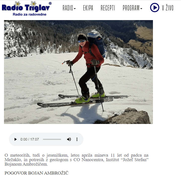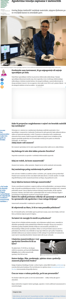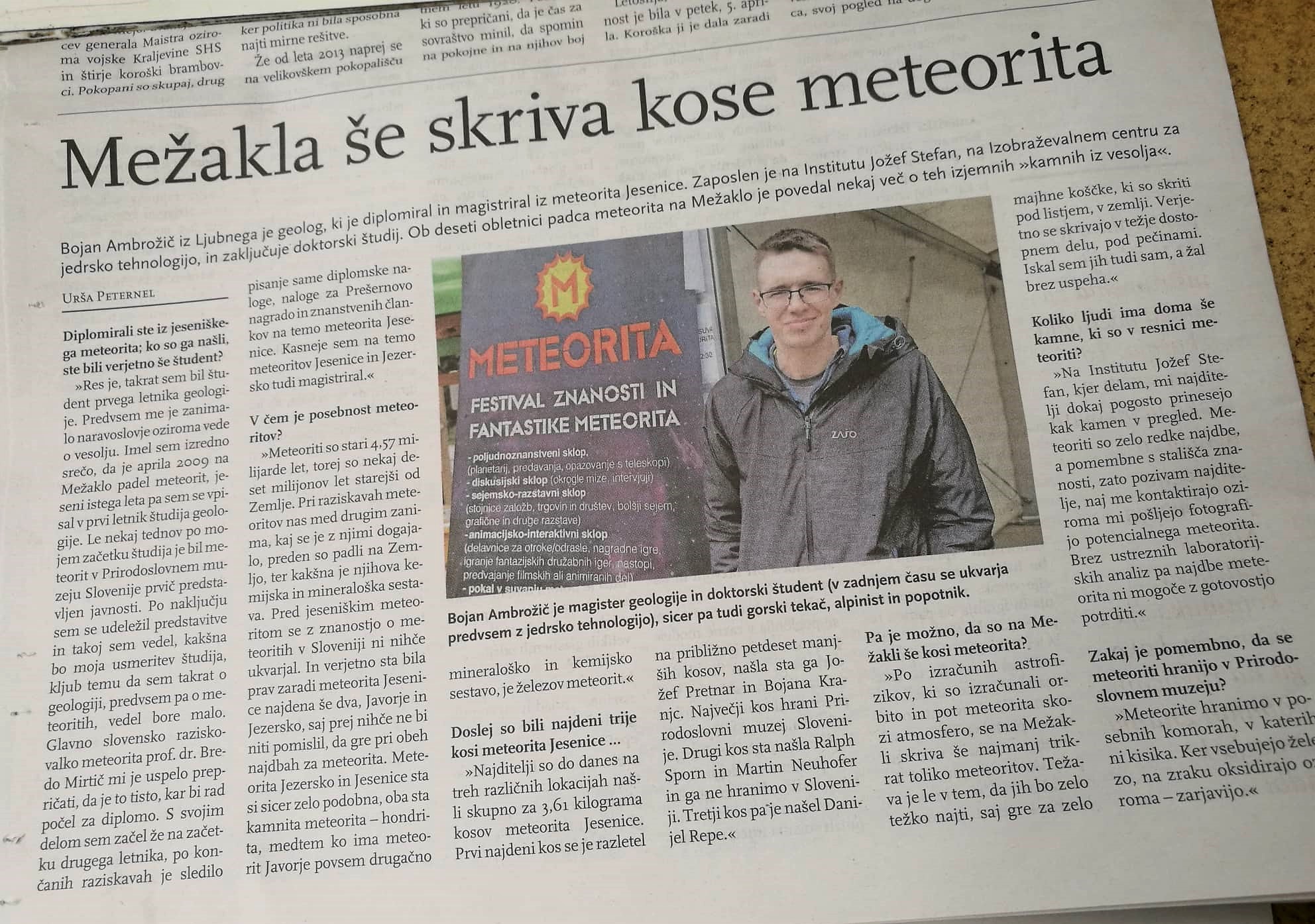 Delo in Delo.si, 27. 8. 2020: https://www.delo.si/novice/znanoteh/zgodovina-vesolja-zapisana-v-meteoritih-343542.html?fbclid=IwAR3n_-WvnC7Y3U4CoUS7QLc6ja0UsFhB2ZdOYBoptv3DwRlta7hM5a6b40E